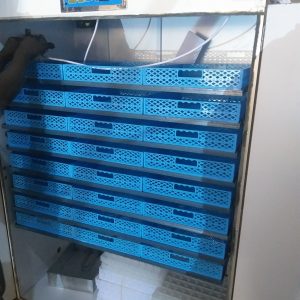The machine uses 45° automatic tilting trays, ensuring proper yolk positioning and even heat circulation across all incubation trays. During the final three days, eggs are moved to separate hatch baskets, ensuring cleaner lockdown, improved airflow and safer chick emergence.
