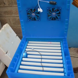 The Autohatch 64-Egg Automatic Incubator is a compact, fully imported machine designed for small farmers, beginners, and home hatchery projects in Kenya and East Africa. It features 360° roller egg turning, digital temperature & humidity control, built-in candler, external water top-up, and dual AC/DC power, making it ideal for rural areas and farms with unstable electricity.